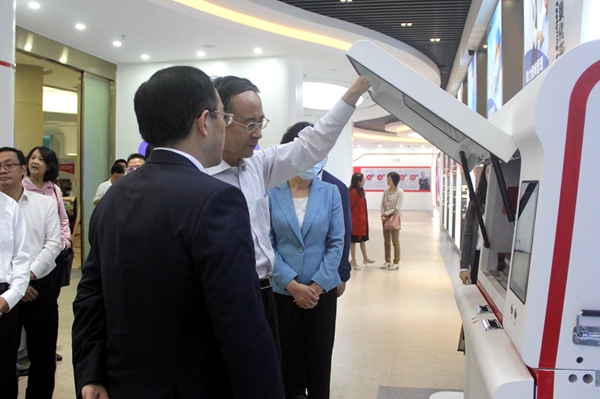 在参观实验室时,万立骏主席一行详细了解了hth.com华体会新冠核酸检测方案、HPV检测方案、呼吸道检测方案以及血筛检测方案等一系列“hth.com华体会方案”。