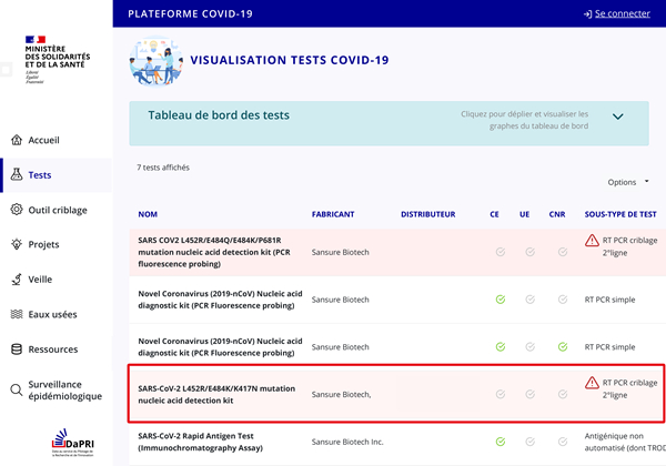 近日,hth.com华体会生物新冠病毒L452R/E484K/K417N突变核酸检测试剂盒顺利通过法国卫生部备案许可。这也是hth.com华体会生物第五个获得法国卫生部备案许可的新冠检测产品。