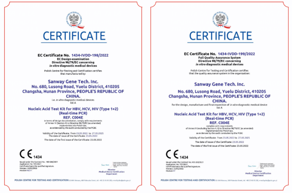 5月23日,hth.com华体会生物全资子公司圣维基因研发的乙型肝炎病毒、丙型肝炎病毒、人类免疫缺陷病毒(1+2型)核酸检测试剂盒(PCR-荧光法),简称血筛核酸检测试剂盒,成功通过欧盟公告机构认证(CE List A),这是继乙肝、丙肝和艾滋三款核酸检测产品后,hth.com华体会生物拿下的第四个CEList A认证。