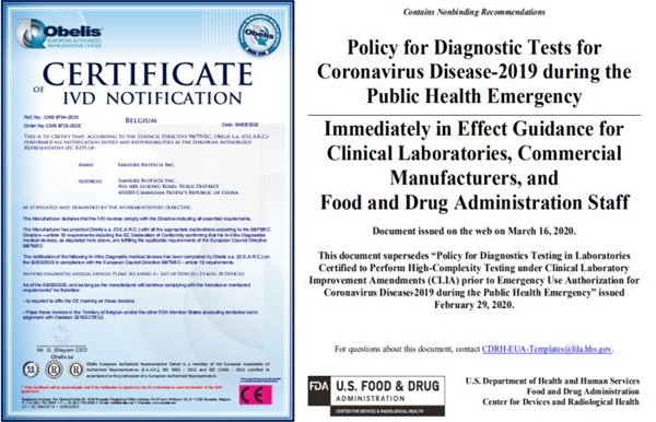 hth.com华体会生物作为抗击疫情的一份重要力量,3月3日新型冠状病毒核酸检测试剂已获欧盟CE认证。此外,公司已经启动美国FDA EUA(紧急使用授权)申请,且Pre-EUA已受理,根据美国FDA 3月16日最新发布的新冠肺炎相关检测政策指南,hth.com华体会生物新型冠状病毒核酸检测试剂盒可在美国供临床使用,服务当地疫情防控。